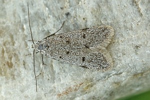2. Färbung / Zeichnung: dolomitana ist einheitlich gleichmäßig mittelgrau mit undeutlicher, unscharfer Fleckenzeichnung. Der Tornalfleck ist sehr verschwommen, oft fehlt er auch. Der Flügelsaum weist kaum Saumpunkte auf, welche bei den anderen beiden Arten meist kontrastreich und deutlich sind. S. albicanella fällt durch die meist sehr helle, weißliche Grundfarbe mit teilweise stark reduzierter Punktzeichnung auf. Sie ist auch die kleinste der vier Arten.