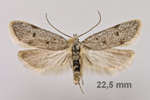 1. Größe: dolomitana ist mit 24 – 25 mm Spannweite bei den Männchen deutlich größer als achrestella und caliginella und hat außerdem gestrecktere, schmalere Vorderflügel als die beiden anderen, die kurz- und breitflügeliger wirken.