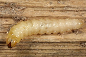 Bei genauer Betrachtung bleiben aber restliche Spuren nicht verborgen, und durch ganz vorsichtiges Weghebeln der Rinde ist die Raupe schnell freigelegt: