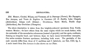 - Erstbeschreibung: Godman, F. D. & O. Salvin (1879-1901): Biologia Centrali-Americana. Insecta. Lepidoptera-Rhopalocera. Vol. III. (Plates.): pl. 1-24, 24a, 25-112. — Digitalisat auf biodiversitylibrary.org: [pl. 103 figs. 1-3]
