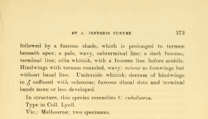 - Original description: Turner, A. J. (1917): Revision of Australian Lepidoptera, vi. — The Proceedings of the Linnean Society of New South Wales 42 (2): 304-336, 344-390. Sydney (W. A. Pepperday & Co.).