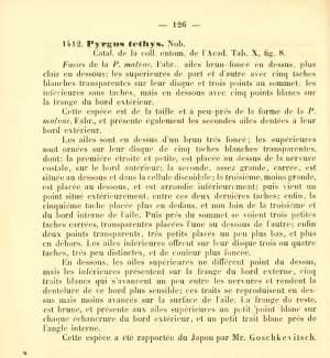 - Erstbeschreibung: Ménétriés, E. (1857): Descriptions des nouvelles espèces de lépidoptères diurnes, de la collection de l'académie impériale des sciences. — In: Enumeratio corporum animalium musei imperialis academiae scientiarum Petropolitanae. Classis Insectorum. Ordo Lepidopterorum. Pars II. Lepidoptera Heterocera: I-VI, 67-97, pl. I-XIV. Petropoli (Typis academiae scientiarum imperialis).
