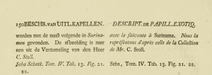 Nur der „Naamwyzer van de dag- en nagt-kapellen“ – im Band 1 der "uitlandsche kapellen" die Seiten 151-155 – ist maßgeblich für das Erscheinungsjahr der Erstbeschreibung, weil dies der einzige binominale Teil des Bandes ist. Nach Hemming (1958: 41) wurden diese Seiten 1776 publiziert.