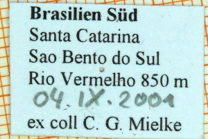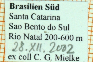 7-9: ♂, Daten siehe Etiketten (fot.: Ernst Brockmann, Fotos bearbeitet: Michel Kettner), coll. Departamento de Zoologia, Universidade Federal do Paraná, Curitiba, Paraná, Brazil.
