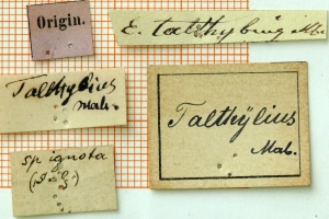 1-3: Syntypus ♀ von Eudamus talthybius Mabille, 1888, Daten siehe Etiketten (fot.: Ernst Brockmann, Fotos bearbeitet: Michel Kettner), coll. Zoologisches Museum der Humboldt-Universität zu Berlin.