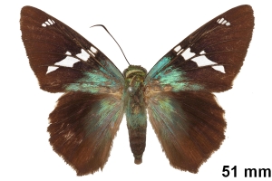 1-2: Neotypus ♀, two labels, one green [Surinam | V. – IX Fruhstorfer] and the other white [DNA sample ID: | NVG-18057D08 | c/o Nick V. Grishin] (fot.: Nick V. Grishin, Fotos bearbeitet: Michel Kettner), coll. Zoologische Staatssammlung München.