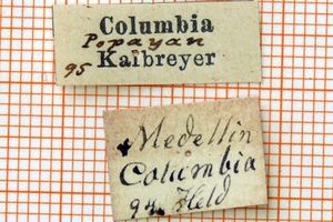 1-3: Syntypus ♂, Daten siehe Etiketten (fot.: Ernst Brockmann, Fotos bearbeitet: Michel Kettner), coll. Zoologisches Museum der Humboldt-Universität zu Berlin.