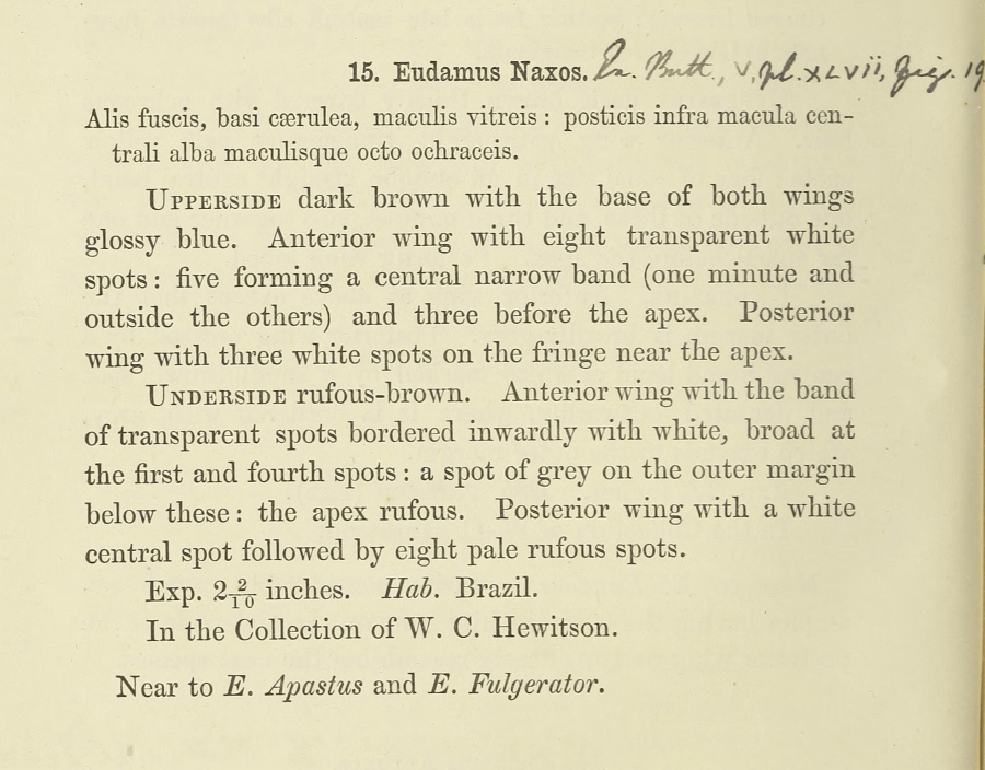 - Eudamus naxos Hewitson, 1867 [Originalkombination]