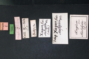 1-3: Syntypus ♀ von Goniloba malefida Herrich-Schäffer, 1862, Daten siehe Etiketten (fot.: Bernard Hermier, Fotos bearbeitet: Michel Kettner), coll. Zoologisches Museum der Humboldt-Universität zu Berlin.