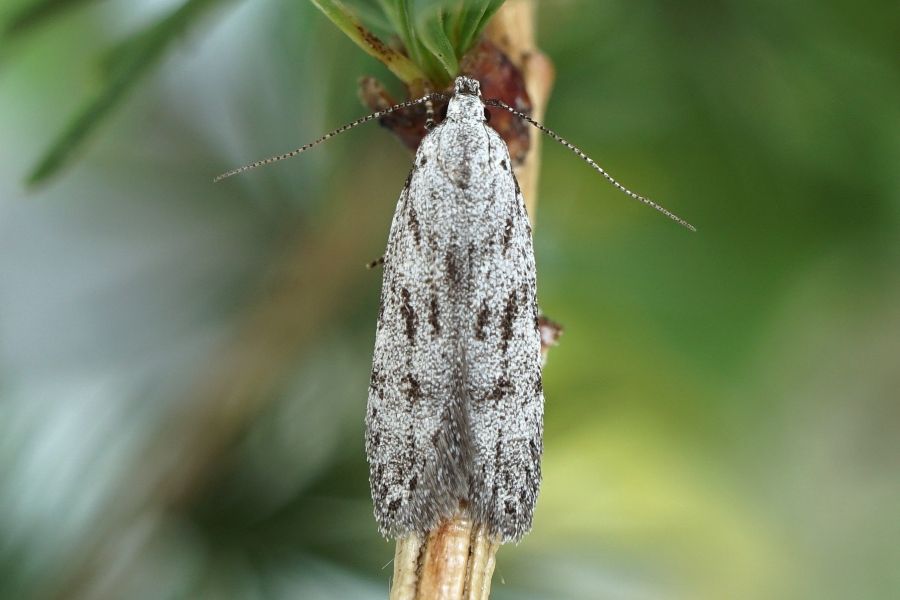Huemer & Karsholt (1999: 59) trugen zusammen: "The larva feeds from April to May on spun needles of Larix Mill. (Pinaceae) both on old and younger trees (Schütze, 1931: 37). It has also been recorded from Pinus sylvestris L. (Pinaceae) (Steuer, 1988). The record of Populus L. (Salicaceae) (Piskunov, 19990: 937) is probably erroneous." Ich konnte die Arbeit von Steuer (1988) noch nicht studieren, melde aber - wie auch andere - erhebliche Zweifel an dieser Angabe an.