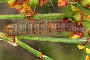Von Heyden (1862: 174-175) schrieb bald danach zu "Gelechia Scabidella": "Raupe fast spindelförmig, glanzlos, grünlichgrau, auf dem Rücken mehr röthlichgrau; mit sehr kleinen, ein helles Härchen führenden schwarzen Wärzchen, die mit einem helleren Ring umgeben sind. [...] Die ziemlich flüchtige Raupe findet sich nicht selten Anfangs Juli, besonders an sandigen Orten hiesiger Gegend, an Rumex acetosella. Sie verfertigt sich an den Samen tragenden Stengeln ein feines, röhrenartiges Gespinnst, in das Samen verwebt ist, von dem sie lebt. Sie verpuppt sich an ihrem Wohnorte zwischen etwas dichterem Gespinste."