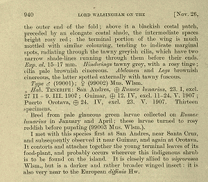 - Erstbeschreibung: Walsingham (1908): Microlepidoptera of Tenerife. — The Proceedings of the Zoological Society of London for the Year 1907: 911-1034 + pl. LI-LIII.