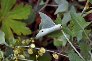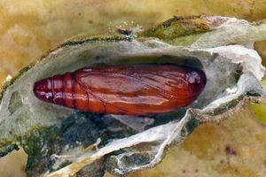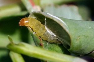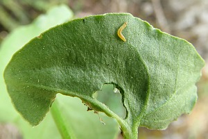 De Bros & Thomann (1953: 23) berichten aus dem Bergell in der südlichen Schweiz: "Thomann fand die einfarbig blaßgrünen Raupen mit gelblichem Kopf in den nach oben umgerollten Blatträndern von Rumex scutatus."