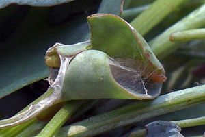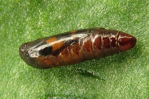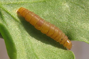 Klimesch (1951: 30) berichtet aus dem Trient (Italien): "Ischia Podetti - Zambana nelle pendici franose lungo la strada, 15-22-VIII numerose larve sul Rumex scutatus e alcuni adulti scovati dalle frane. La larve giovane di color bruno chiaro provoca delle gallerie poco tortuose e brevi (lunghi 12 mm.) e strette (larhezza media 0,50-0,75 mm.) (fig. 5) nelle foglie. Le larve adulte vivono nelle foglie arrotolate (fig. 6) (ved. Fuchs, Ent. Ztschr. Guben XIX, p. 172)." [bei der Zeitschrift vertat sich der Autor mit "Guben".]