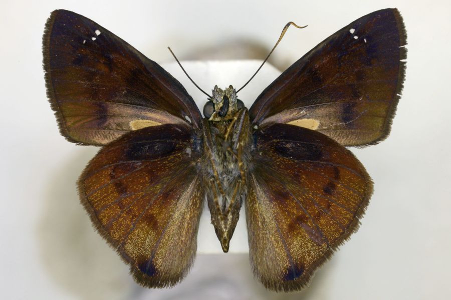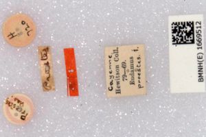 1-3: Lectotypus ♂ von Eudamus praestes Hewitson, 1876, Daten siehe Etiketten (fot.: Nick V. Grishin, Fotos bearbeitet: Michel Kettner), © Images copyright Trustees Natural History Museum, used with permission.