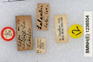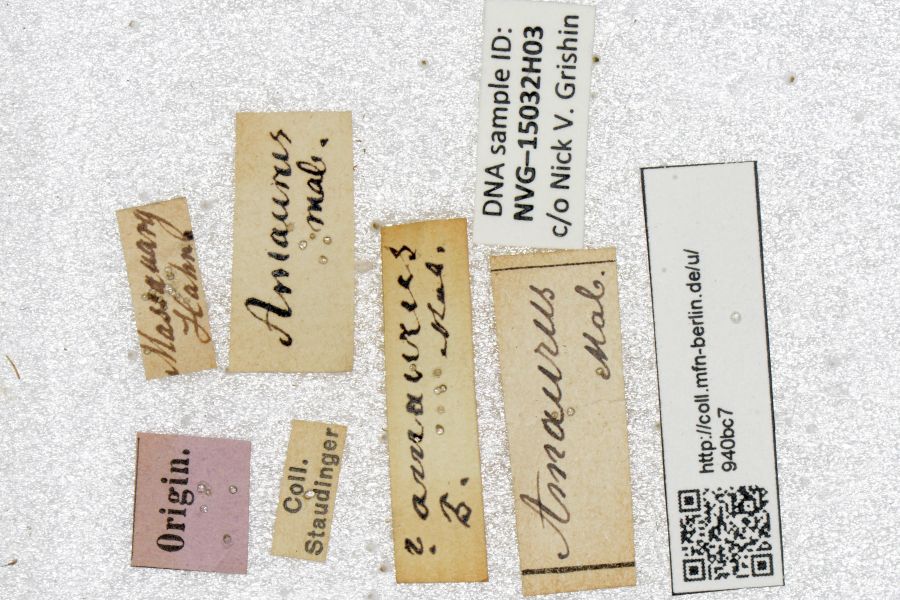 7-9: zweifelhafter Syntypus ♂, Daten siehe Etiketten (fot.: Nick V. Grishin, Fotos bearbeitet: Michel Kettner), © Images copyright Trustees Natural History Museum, used with permission.