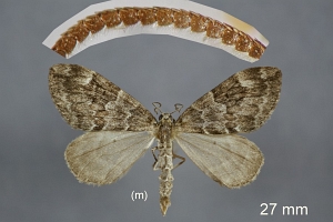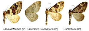 Die Männchen von Thera variata und Thera britannica können anhand der Fühler unterschieden werden.
