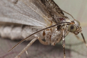 Achtung: Die Fühler sind nicht symmetrisch. Man kann die Zähnung bei Thera britannica also nur im Profil (= von der Seite) sehen, nicht von oben oder von unten! Für unerfahrene Beobachter und Fotografen ist es wichtig, daß sie sich die Fühler von allen Seiten ansehen bzw. fotografieren. Eine Aufsicht oder ein Foto nur von der beschuppten Seite des Fühlers (= oben) oder von unten zeigt die entscheidenden Merkmale nicht!