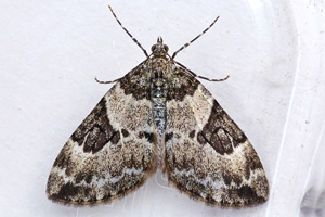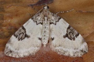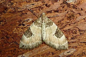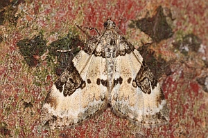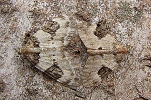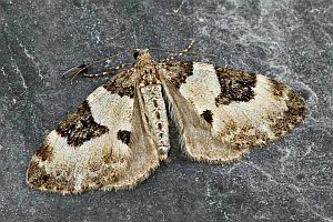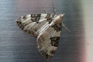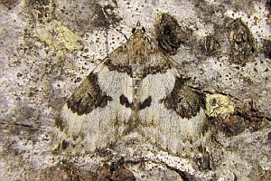 Im Gegensatz zu Thera variata, Thera britannica und Thera obeliscata ist die Grundfarbe stets hell, grau, weißgrau oder gelblichgrau. Das dunkle Mittelfeld ist meist nur als großer Fleck am Vorderrand entwickelt, oft zusätzlich mit kleineren Flecken im Mittelfeld, aber selten als ein vom Vorder- bis zum Hinterrand durchgehendes Feld. (Text: Axel Steiner)