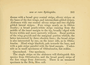 - Original description: Kirby, W. F. (1877): Notes on the new or rare Sphingidæ in the Museum of the Royal Dublin Society, and Remarks on Mr. Butler's recent revision of the Family. — The Transactions of the Entomological Society of London for the Year 1877: 233-244.