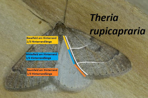 Theria rupicapraria DENIS & SCHIFF., 1775 ist immer heller als primaria und intensiver gefärbt. Die Vorderflügel sind schmaler, der Apex spitzer. Beide Begrenzungslinien des Mittelfeldes sind deutlich ausgeprägt. Der Mittelpunkt ist länglich. Nach meinen Beobachtungen fliegt die Art etwas später als primaria (zwei bis drei Wochen). Das dunkle Mittelband auf den Stummelflügeln der weiblichen Tiere verjüngt sich zum Innenrand.