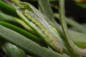Huemer (1998) schrieb zu Gypsophila repens in den Hohen Tauern in Österreich: "Die Art wurde bisher nur sehr lokal, meist im Bereich von stabilisierten Schutthalden registriert, seltener an Felsen. Die Raupen verspinnen im Frühjahr die Blättchen eines Endtriebes zu einer spindelförmigen Röhre, die innen ausgefressen wird. Auch die Kotablagerung erfolgt in der Wohnröhre. Erwachsen ist die Raupe ca. 6-7 mm lang, hellgrün, mit gelbraunem Kopf und dunkelbraunem Rückenschild. Zur Verpuppung verläßt sie den Fraßort durch ein Loch und verwandelt sich in einem leichten Kokon meist zwischen abgestorbenen Stengelteilen am Boden. Die Puppe ist braun gefärbt. Zuchtexemplare schlüpften von Mitte Juni bis Anfang August, Tiere aus dem Nationalparkgebiet in der 2. Julihälfte."