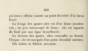 - Erstbeschreibung: Eversmann (1851): Description de quelques nouvelles espèces de Lépidoptères de la Russie. — Bulletin de la Société impériale des naturalistes de Moscou 24 (2): 610-644. Moscou (W. Gautier). — Digitalisat von Google Books im Viewer der Hathi Trust Digital Library: [637].