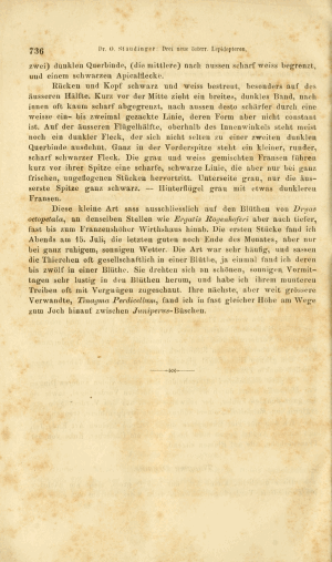 - Erstbeschreibung: Staudinger, O. (1872): Drei neue österreichische Lepidopteren. — Verhandlungen der zoologisch-botanischen Gesellschaft Wien 22: 733-736.