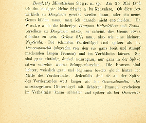 - Beschreibung des bis dato unbekannten Männchens: Gaedike, R. (1991): Neue und seltene Douglasiidae (Lepidoptera). — Deutsche Entomologische Zeitschrift, Neue Folge 38 (1-3): 19-25 [Digitalisat und PDF-Download auf onlinelibrary.wiley.com].