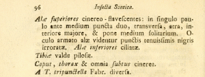 - Erstbeschreibung: Thunberg, C. P. (1794): D. D. dissertatio entomologica sistens insecta svecica 7: 83-98 + pl. Upsala (Johan. Erdman).