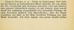 - De Prins, W. (2013): Tischeria decidua (Lepidoptera: Tischeriidae), new to the Belgian fauna. — Phegea 41: 5-6 [PDF auf phegea.org].
