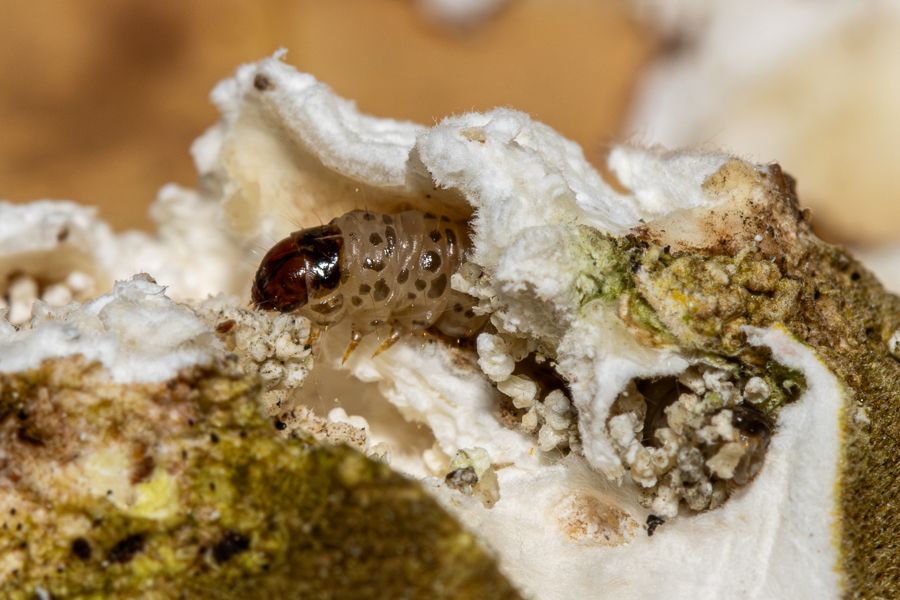 1-2: Schweiz, Bern, Roggwil, 450 m, 21. Mai 2012, Tagfund, offensichtlich aus einem Kiefernstrunk geschlüpft (Freilandfotos: Bettina Hüser), conf. Friedmar GrafForum 3: Deutschland, Rheinland-Pfalz, Ober-Olmer Wald bei Mainz, 29. Mai 2006 (Freilandfoto: Jürgen Rodeland), conf. Rudolf BrynerForum 4: Österreich, Osttirol, Lavant, 750 m, Mai 1994, Raupen in Buckel-Trameten (Trametes gibbosa) (Zuchtfoto: Helmut Deutsch), leg., cult. & det. Helmut Deutsch