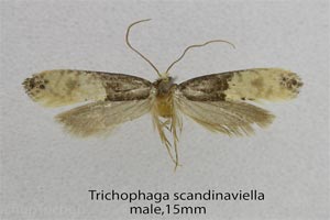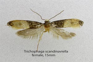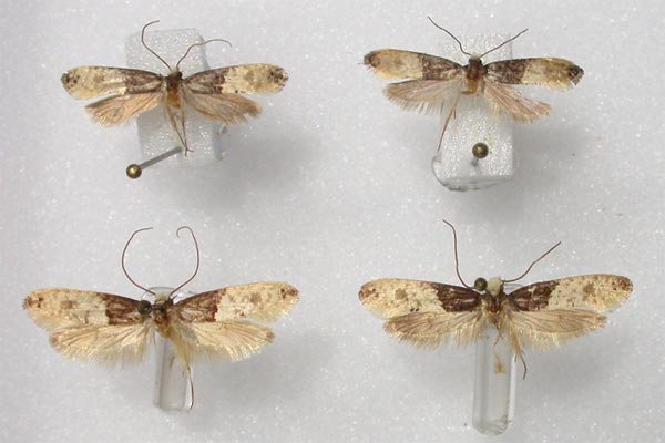 Vergleich Trichophaga scandinaviella (oben) und Trichophaga tapetzella (unten) links ♂♂ rechts ♀♀