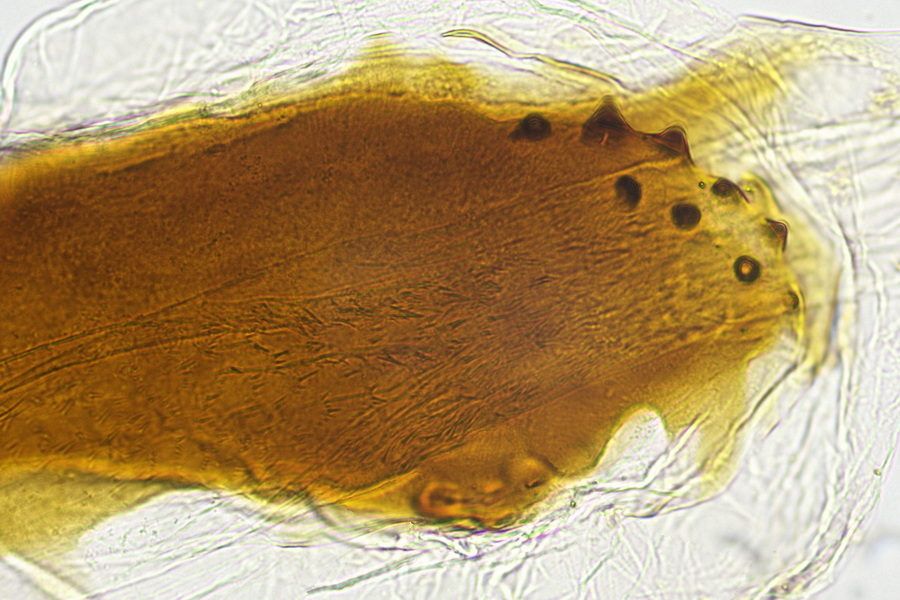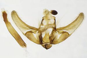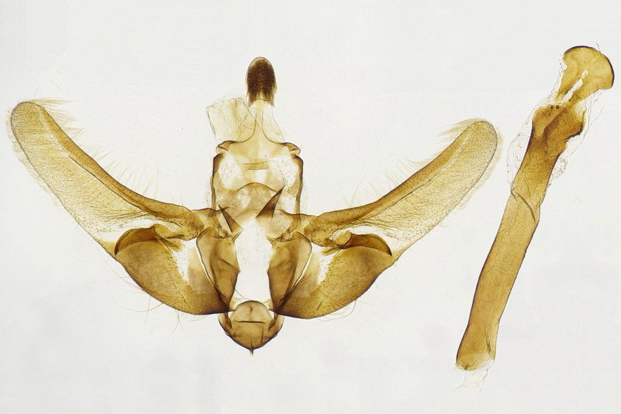 Bei Goater (1986: 84) ist dann ganz anderes zu lesen: “Larva: Feeds in July and August in a slight web on the underside of a frond of narrow buckler-fern (Dryopteris carthusiana) and probably other ferns; overwinters in a strong silken cocoon and pupates in spring.” Dies wurde seither vielfach wiederholt – auch die Originalquelle zur Entstehung dieser Meldung kenne ich leider noch nicht.