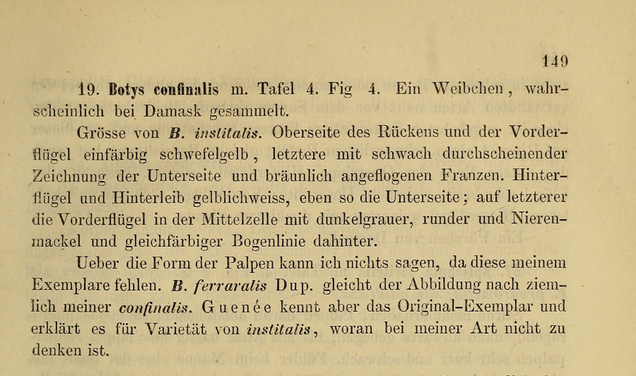 - Botys confinalis Lederer, 1858 [Originalkombination]
