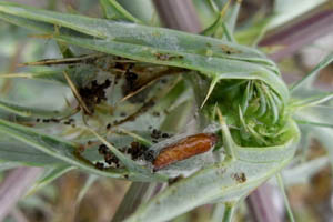 Raupen-Nahrungspflanze ist der Feld-Mannstreu. Was beim Diagnosebild aus Millau (Aveyron) mit "Eryngium montanum" gemeint war, ist unklar - eigentlich sollte es dort außer dem Feld-Mannstreu keine weitere Art der Gattung geben.