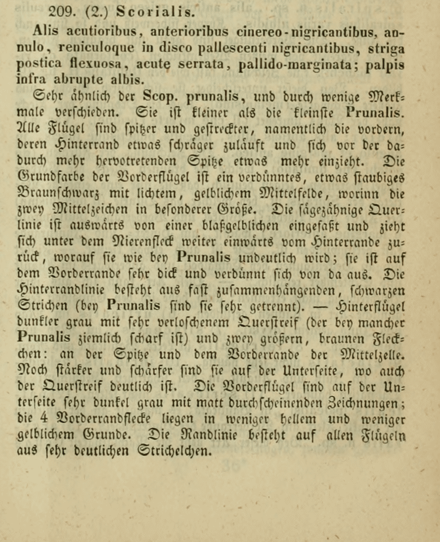 1-2: Herrich-Schäffer ([1849]: Pyralidides pl. 11 fig. 81) [reproduziert von Jürgen Rodeland nach Band im Staatlichen Museum für Naturkunde Karlsruhe], Datierung nach Hemming (1937: 587).
