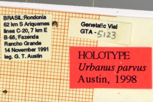 1-3: Holotypus ♂, Daten siehe Etiketten (fot.: Ernst Brockmann, Fotos bearbeitet: Michel Kettner), coll. Departamento de Zoologia, Universidade Federal do Paraná, Curitiba, Paraná, Brazil.