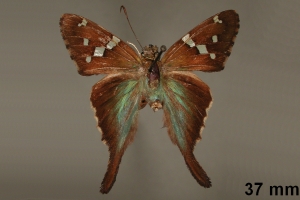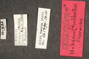 7-9: Holotypus ♂ von Urbanus hubbellus Freeman, 1969, Daten siehe Etiketten (fot.: Bernard Hermier, Fotos bearbeitet: Michel Kettner), coll. American Museum of Natural History. New York City.