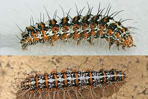 4-5: Flügelunterseite und Abwehrverhalten des Falters, Spanien, Balearen, Menorca, Umgebung Cala en Porter, Friedhelm Mai leg. 4. Oktober 2007 (Studiofotos: Ulrich Müller), Nachzucht Ulrich Müller