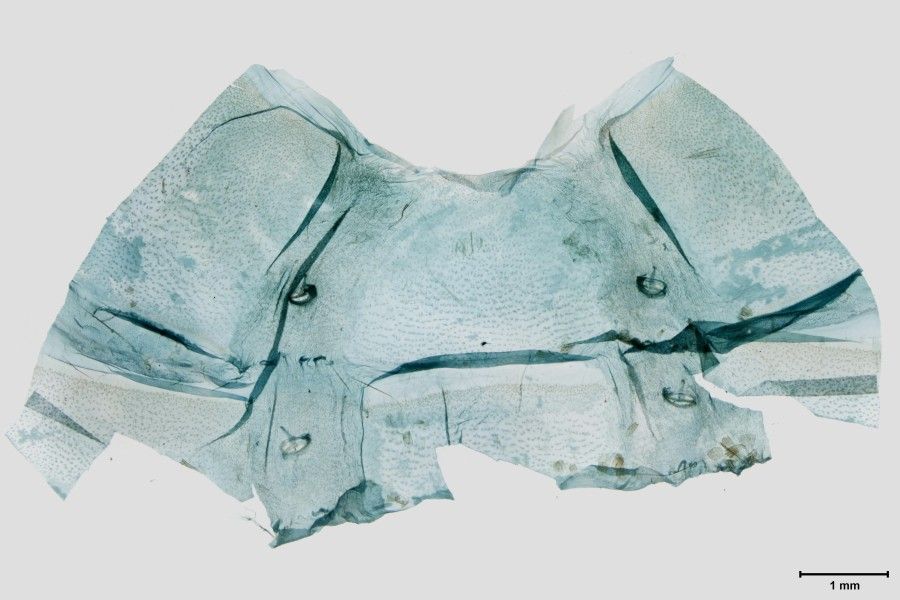 1-2: ♀, Ungarn, Komitat Veszprém, Tótvázsony, Halb-, Trockenrasen, 300 m, 47.02°N, 17.72°E, 1. April 2011, am Licht (prep., gen.det. & Foto: Hartmuth Strutzberg), 1: Genital ventral, 2: siebtes und achtes Sklerit, dorsal aufgeschnitten, proximale Seite obenForum