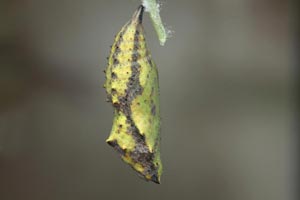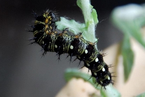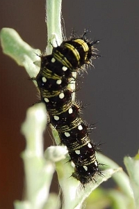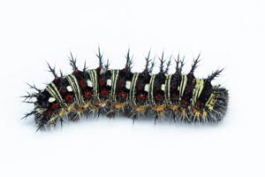Die Raupe frißt an verschiedenen Korbblütlern. In Europa hauptsächlich Ruhrkraut (Gnaphalium spp.), Katzenpfötchen (Antennaria spp.) und Klette (Arctium spp.). Sie lebt, gleich der Raupe von V. cardui, einzeln eingesponnen in einem lockeren Gespinst.