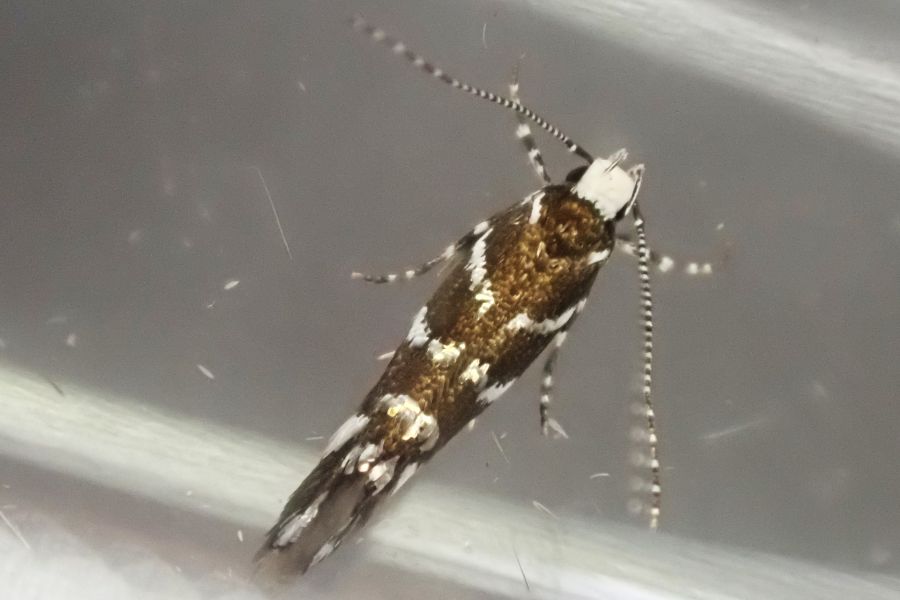 Die Raupe lebt an Strohblumen und der nahe verwandten Gattung Phagnalon. Schon Petry (1904) vermutete bei der Erstbeschreibung in Helichrysum angustifolium, um das die Falter flogen, eine Nahrungspflanze der Raupe. Klimesch (1942) notierte: "1 Männchen aus einer zufällig mit Helichrys. italicum eingetragenen Raupe im Juli 1939 erhalten. Dr. Amsel züchtete diese ursprünglich nur aus Corsica bekannte Art in Sardinien zahlreich aus Phagnalon." Koster & Sinev (2003) und [bladmineerders.nl] stellen zusammen: