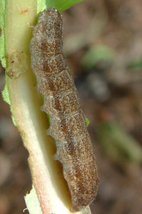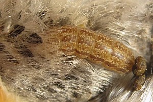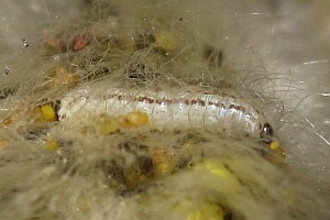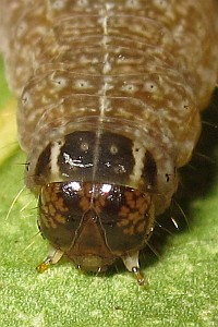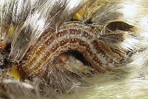 5-8: vorletztes Stadium: Deutschland, Niedersachsen, Umgebung Rodenberg, brachliegendes Grundstück mit fortgeschrittener Verbuschung, ca. 70 m, Jungraupe an Kätzchen von Salweide (Salix caprea) 7. April 2013 (leg., cult., det. & Studiofotos am 14., 15. und 19. April 2013: Tina Schulz)Forum