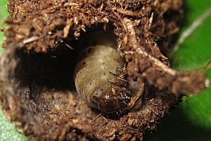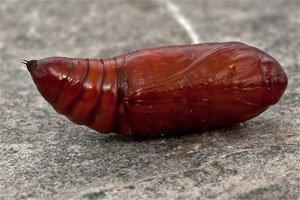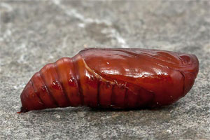 9: Vorpuppe im Erdkokon: Deutschland, Niedersachsen, Umgebung Rodenberg, brachliegendes Grundstück mit fortgeschrittener Verbuschung, ca. 70 m, Jungraupe an Kätzchen von Salweide (Salix caprea) 7. April 2013 (leg., cult., det. & Studiofotos am 23. Mai 2013: Tina Schulz)