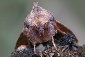 1: Erdkokon, Deutschland, Niedersachsen, Umgebung Rodenberg, brachliegendes Grundstück mit fortgeschrittener Verbuschung, ca. 70 m, Jungraupe an Kätzchen von Salweide (Salix caprea) 7. April 2013 (leg., cult., det. & Studiofoto am 23. Mai 2013: Tina Schulz)Forum