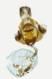 Im Kasten ist der Hinterflügel oberseits meist am Rand hell und zur Flügelwurzel hin verdunkelt, unterseits ist das ähnlich.