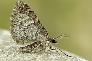 Die Hinterflügel von Xanthorhoe ferrugata sind monoton graubraun.