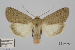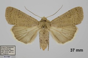 5-6: ♂, Zypern, Bezirksgrenze Limassol/Nikosia, 1 km N Chandria, Adelfoi, unterhalb des Madari-Gipfels, steiniger Berghang mit Zistrose und Quercus, 34,950 °N, 32,998 °E, ca. 1460 m, 1. Oktober 2016, gemischter Licht- und Köderfang (leg., det., präp. & fot.: Hartmuth Strutzberg)Forum