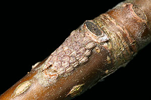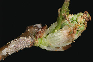 2-3: (2: L1-Raupennest), befallene Knospen an Traubenkirsche (Prunus padus): Schweiz, Waadt, Cudrefin, 430 m, Auenwald, 4. April 2008 (Studio- und Freilandaufnahmen: Rudolf Bryner), det. Rudolf BrynerForum